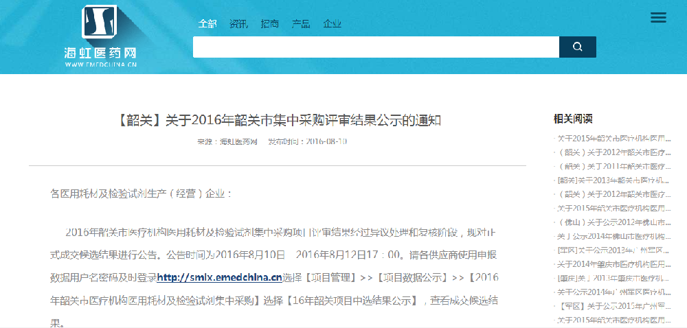 近日,2016年韶关医疗机构医用耗材及检验试剂集中采购对结果进行公示并发放中选通知书。青岛微科欧康贸易有限责任公司作为Grena Ltd中国总代参加了本次招标,参加投标的非吸收高分子结扎夹12个品规全部中标,评审委员会高度认可我司产品的质量、品牌以及服务。中标价格优于同类产品,市场操作空间大。欢迎相关区域经销商电话